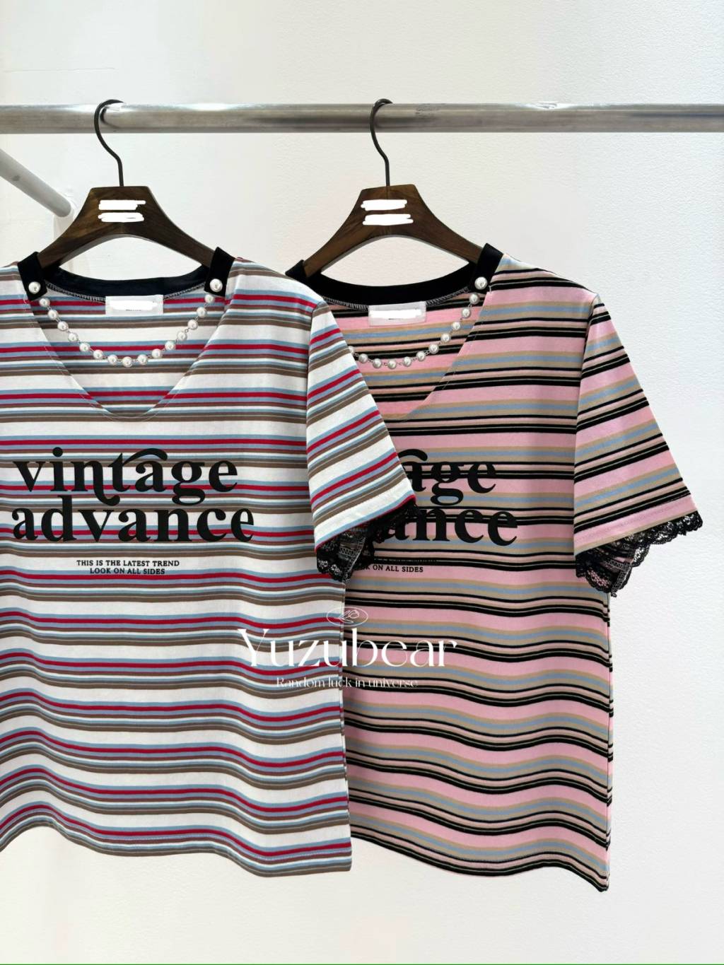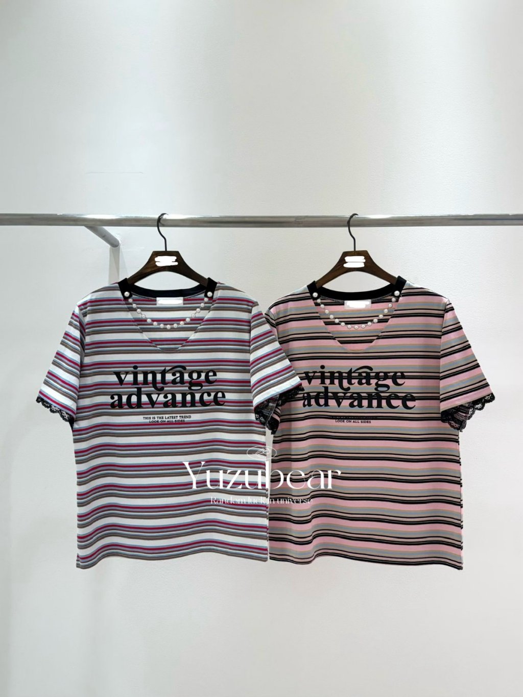 BR17 韓國高質拼色間條珍珠棉質T-shirt