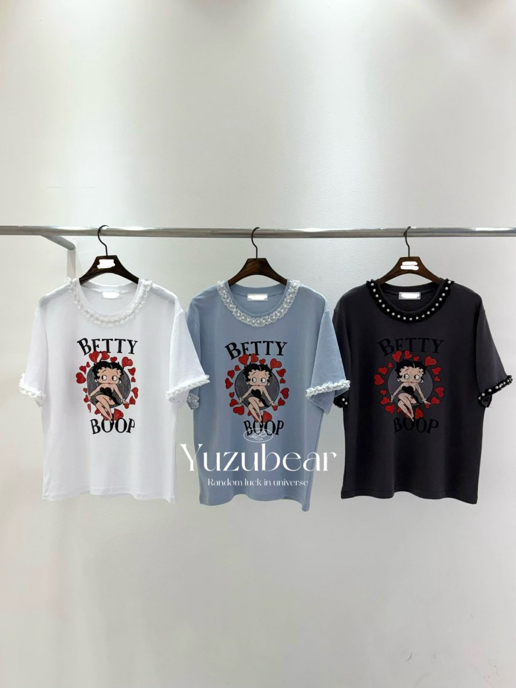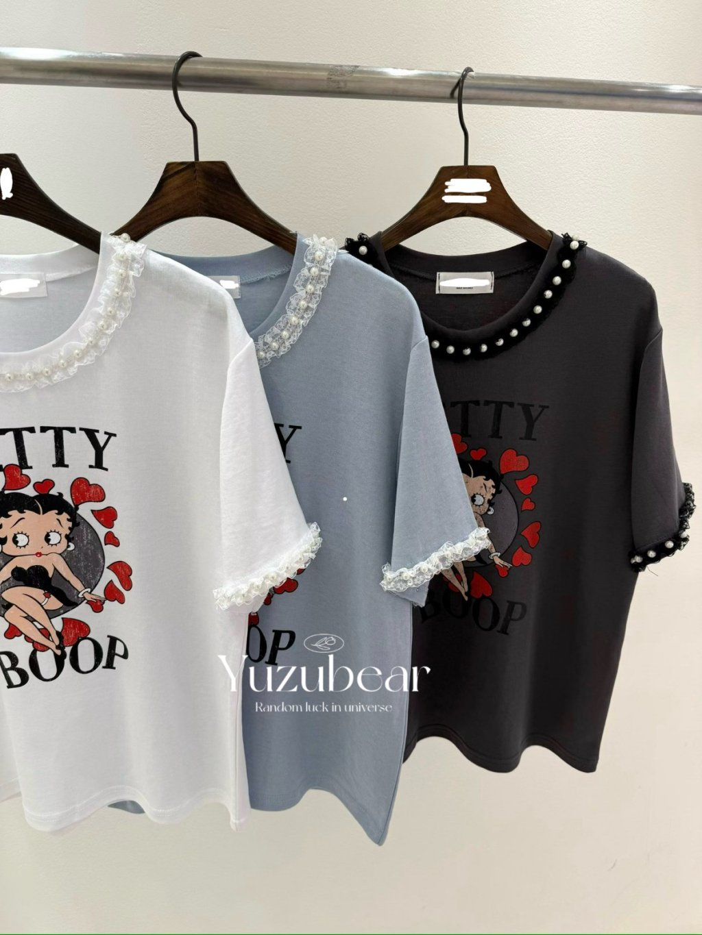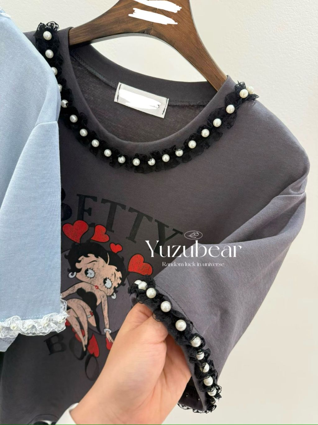 BR18 韓國高質betty 珍珠lace邊棉質T-shirt
