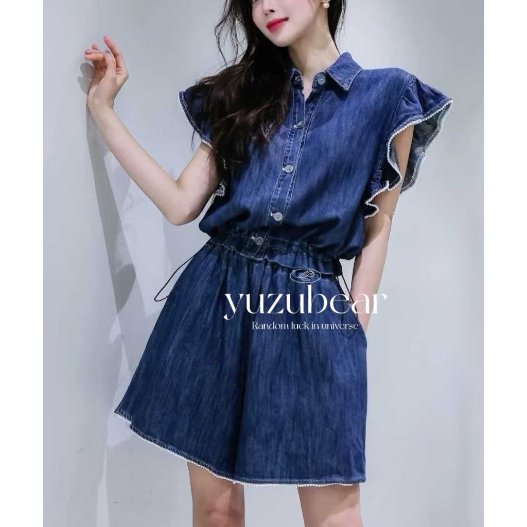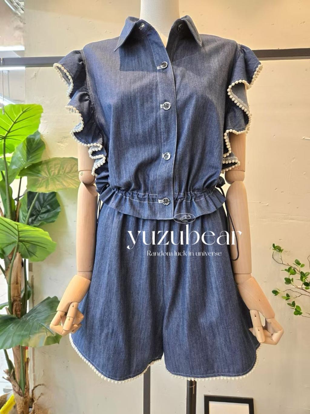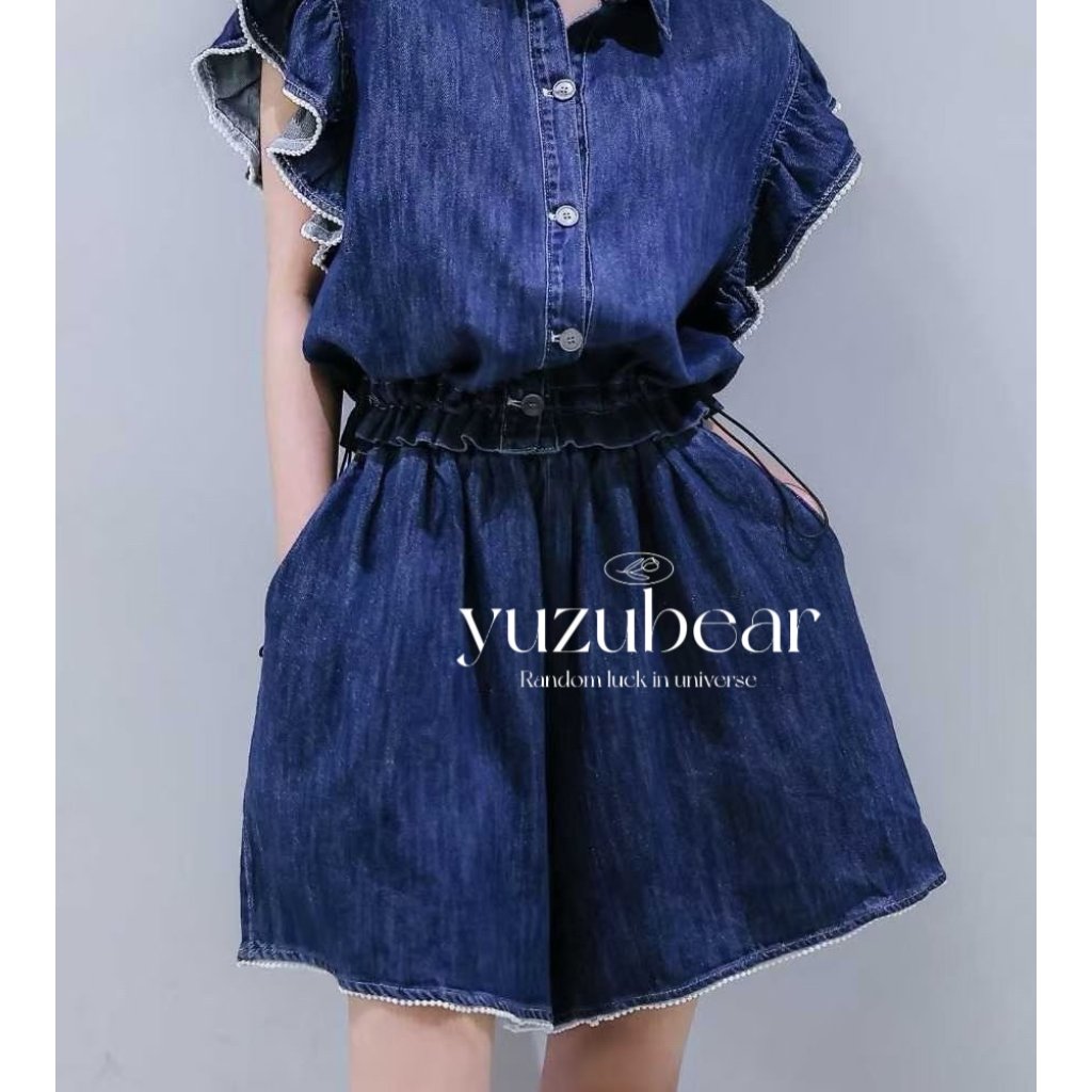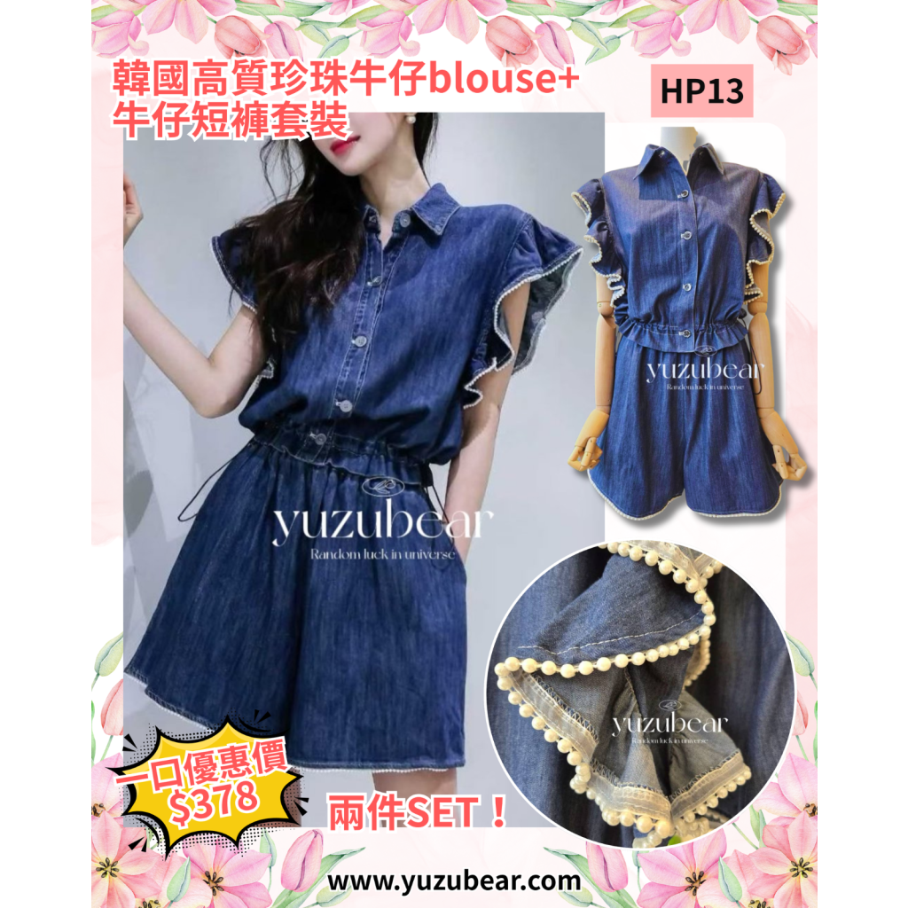 HP13 韓國高質珍珠牛仔blouse+牛仔短褲套裝