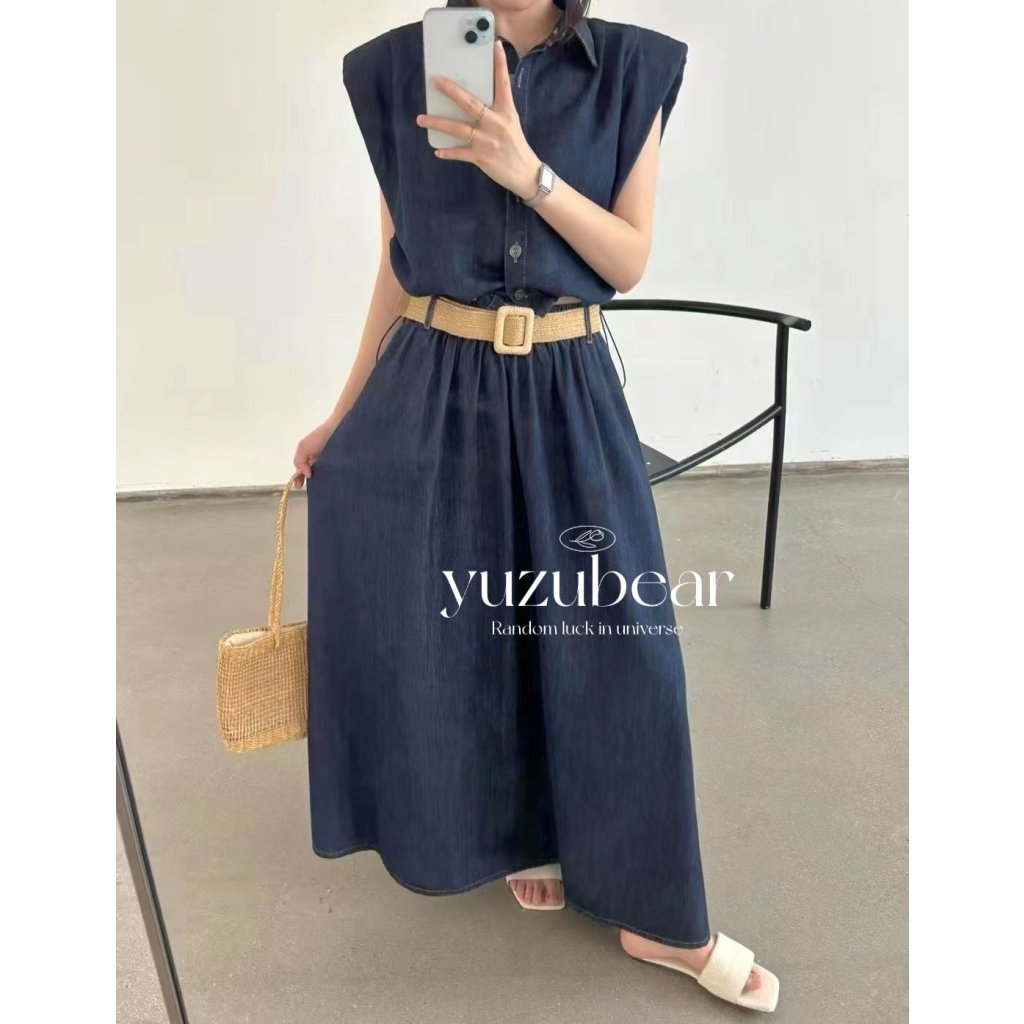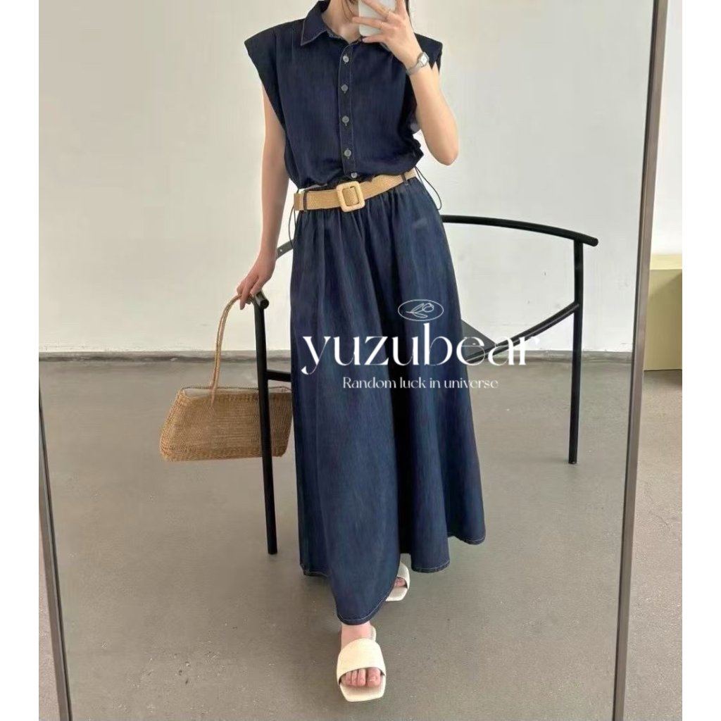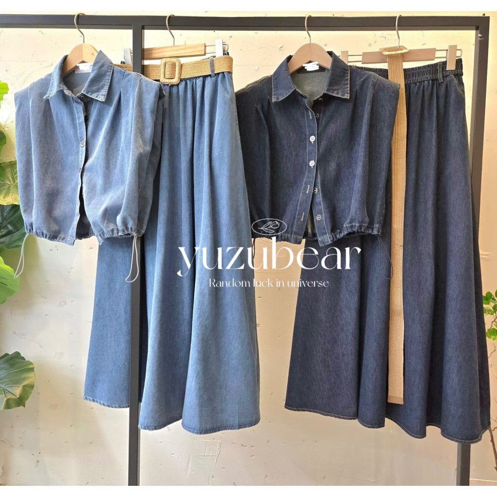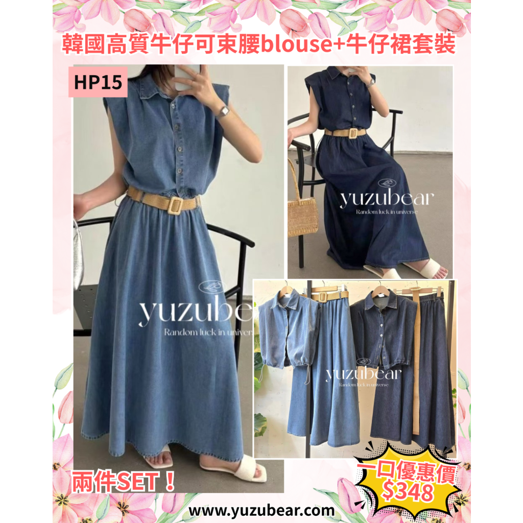 HP15 韓國高質牛仔可束腰blouse+牛仔裙套裝