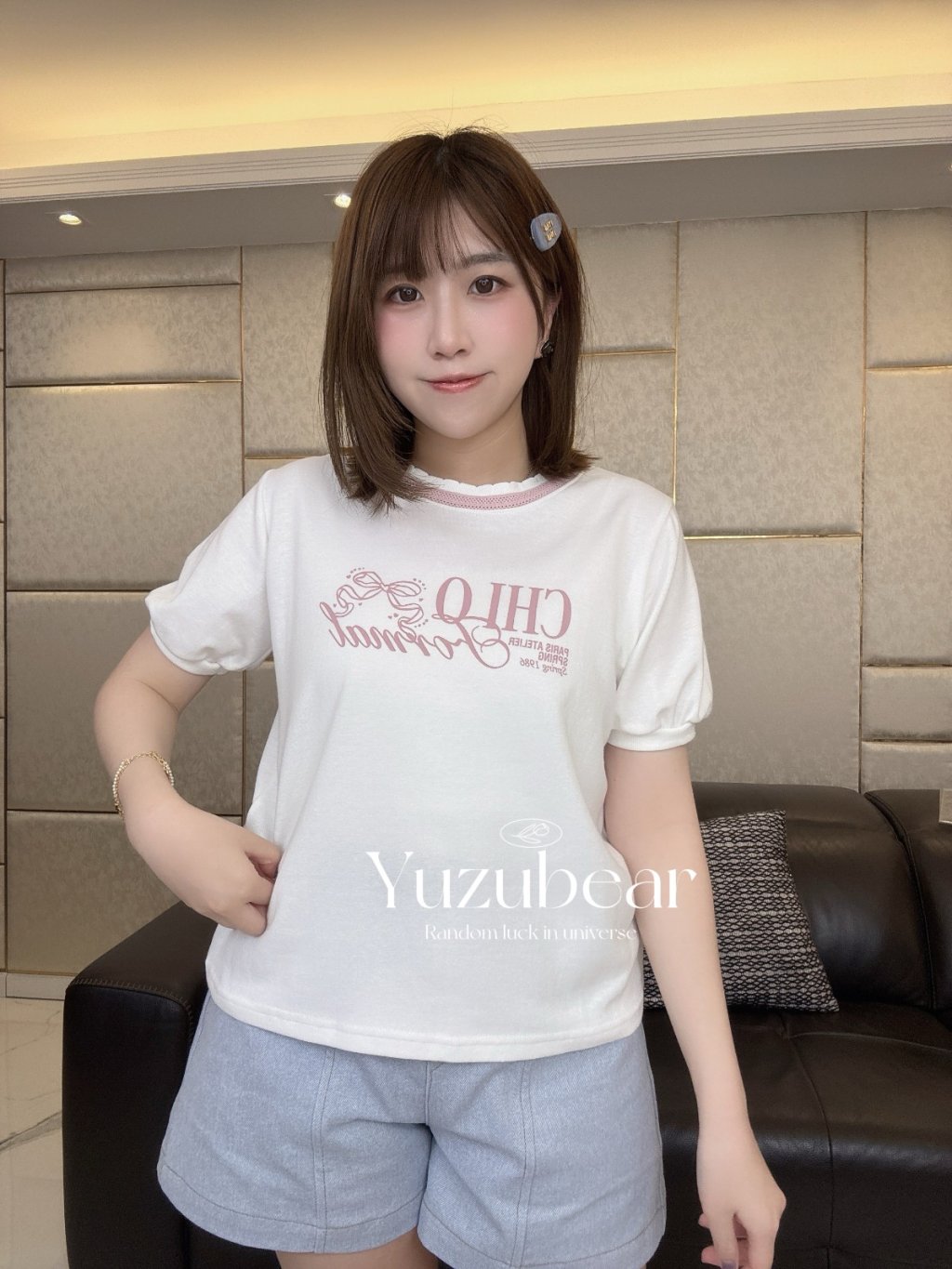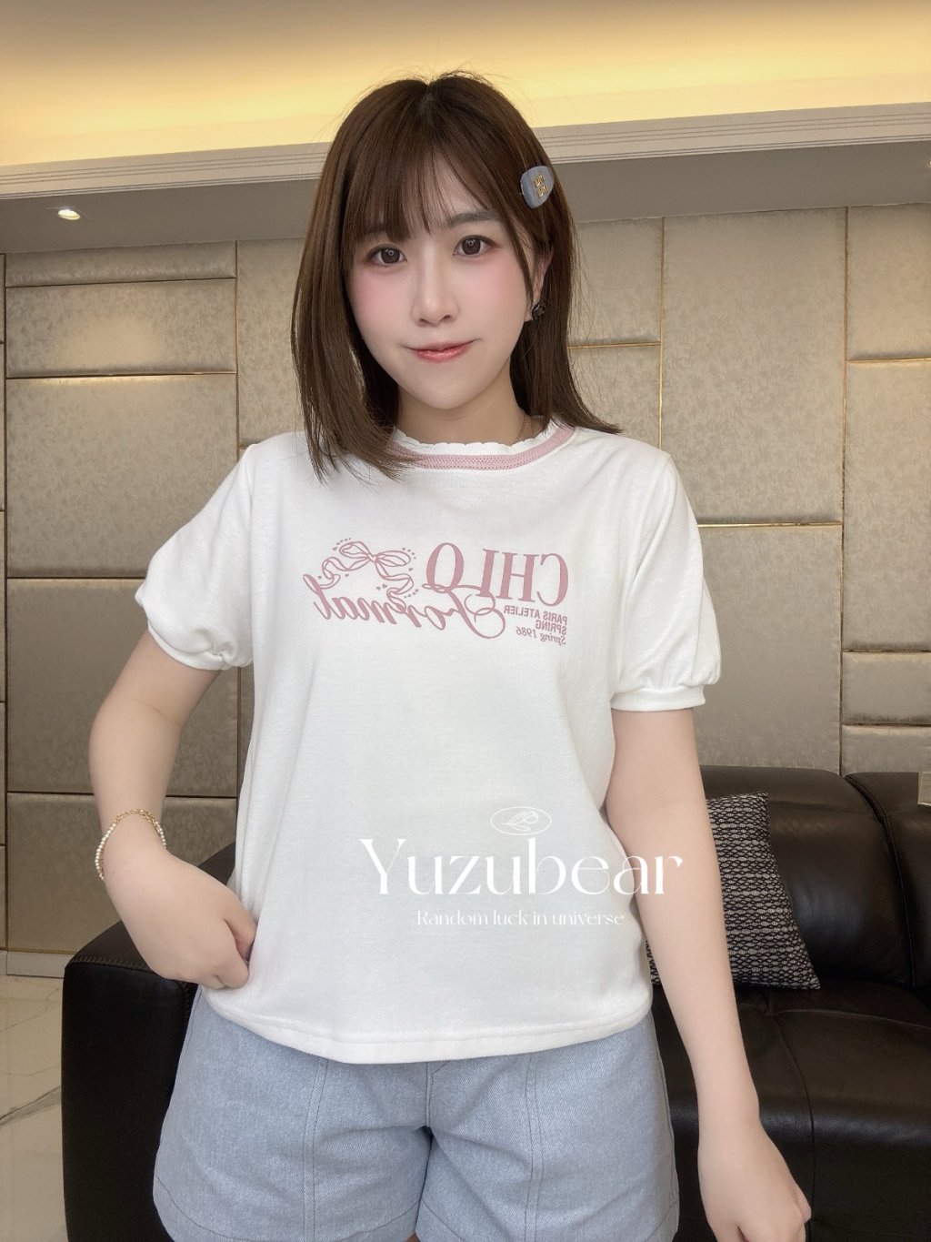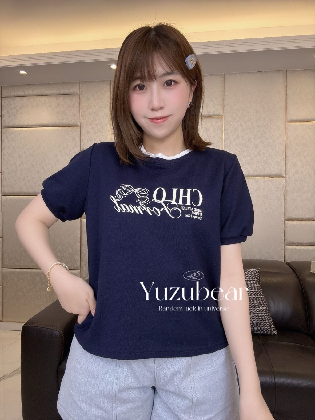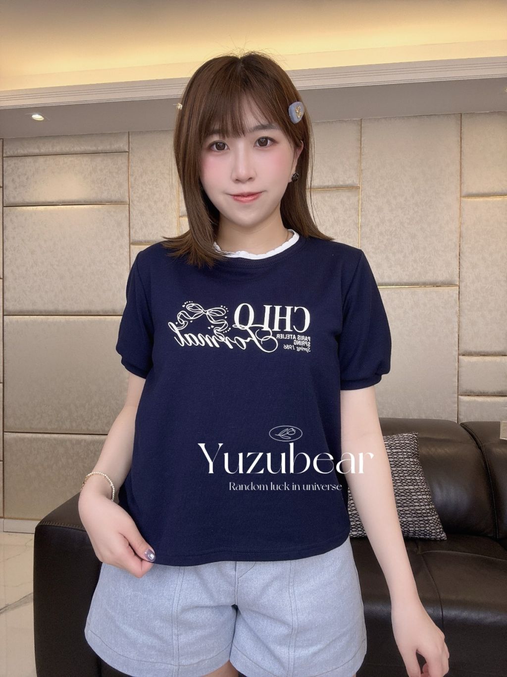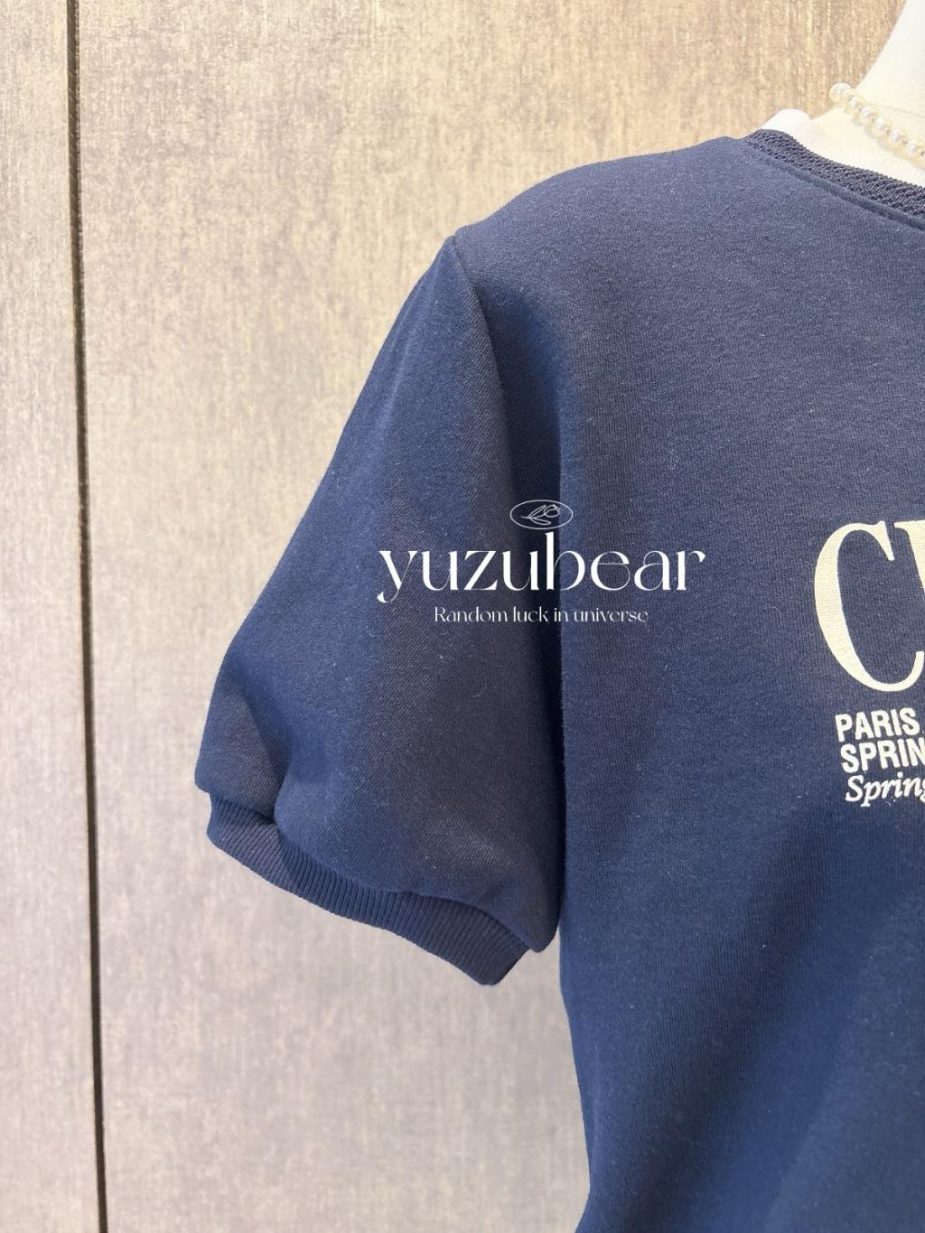 SS96 韓國高質蝴蝶結法式公主袖拼色領blouse