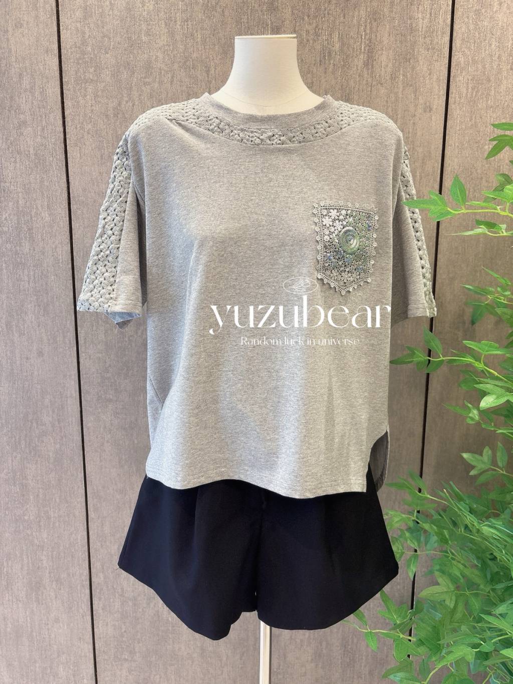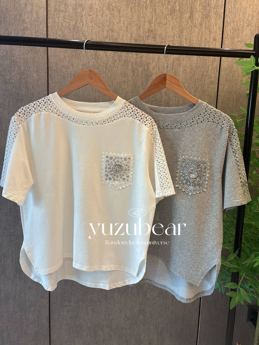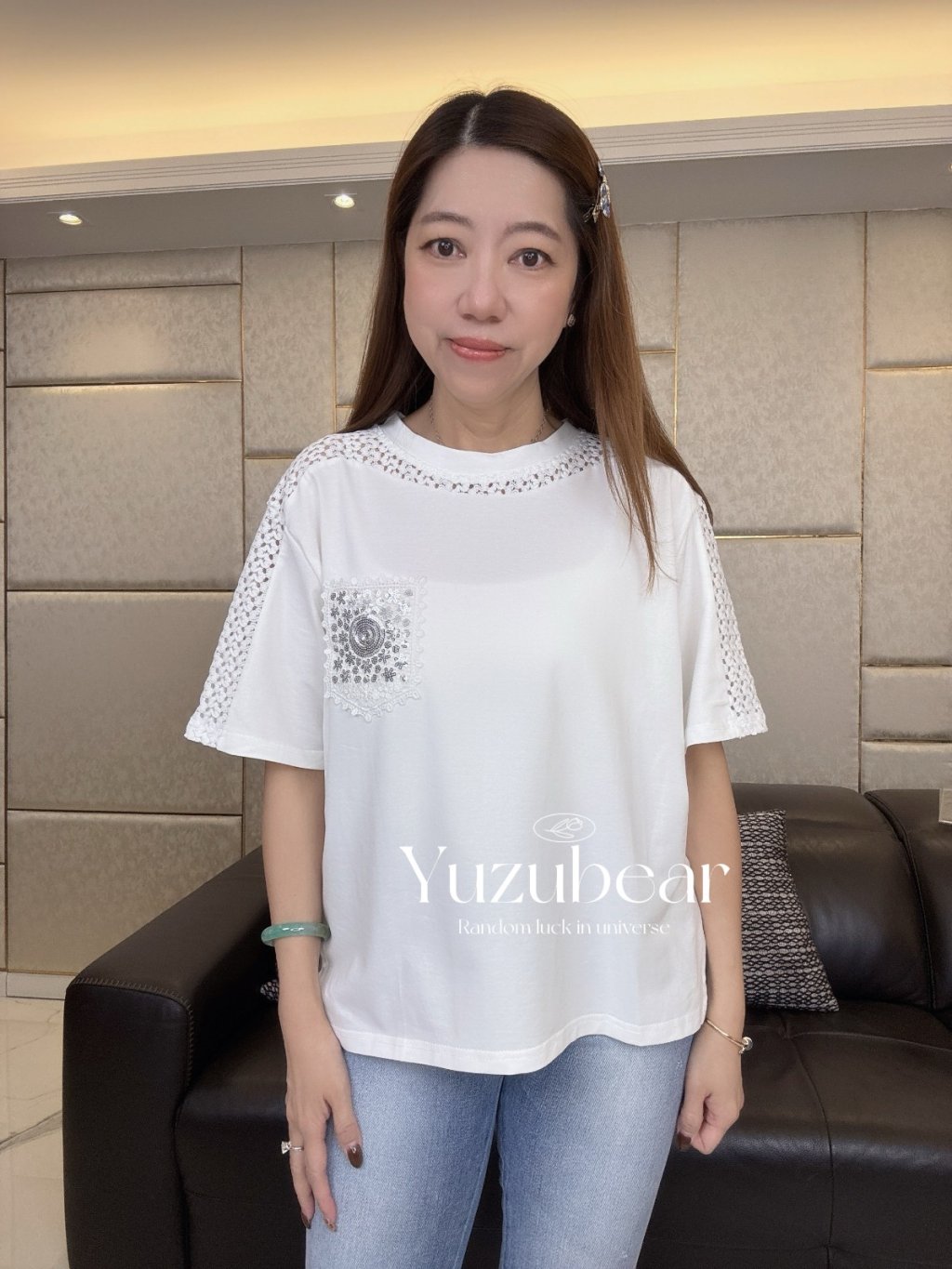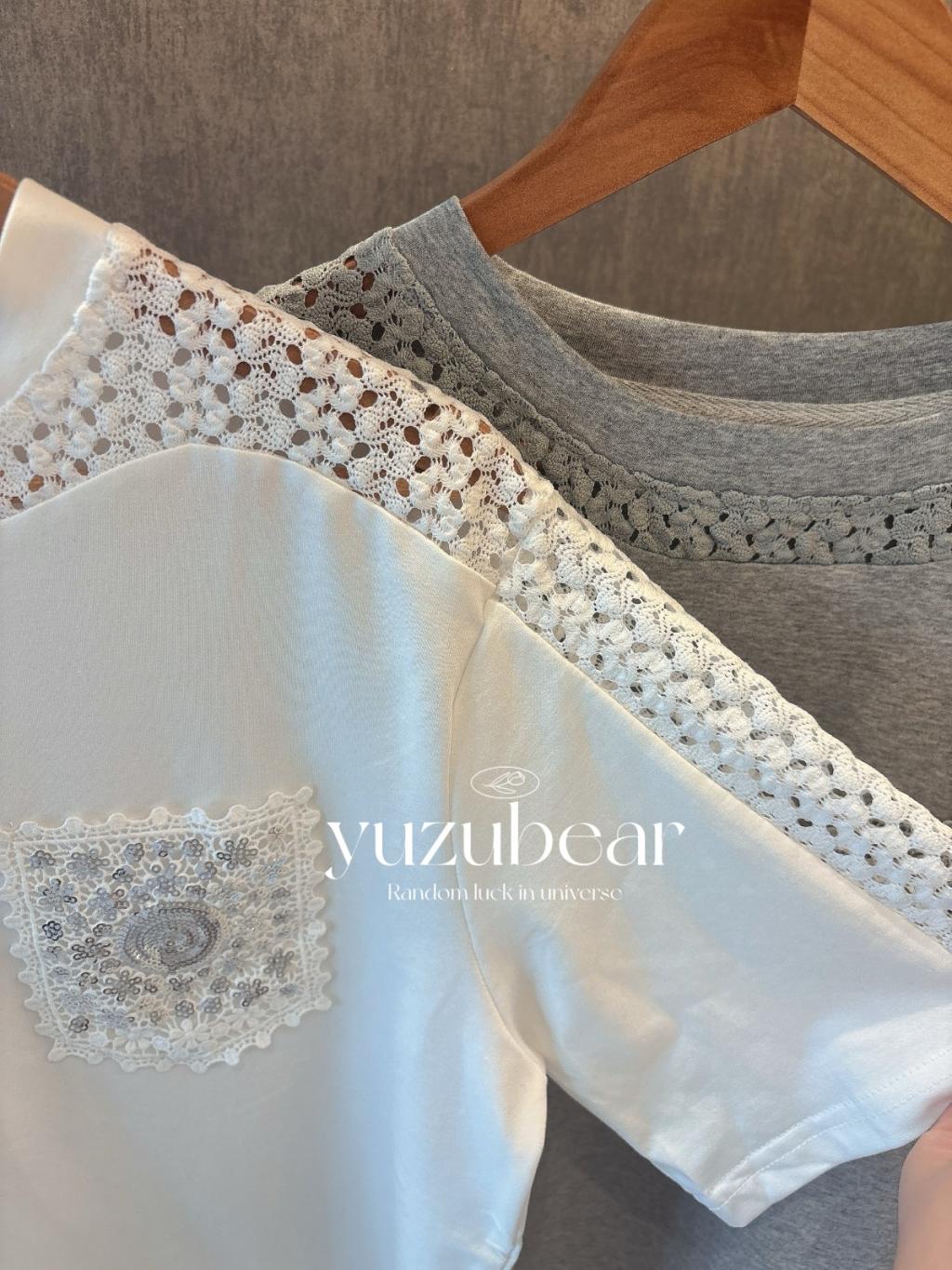 SS99 韓國高質閃花片口袋拼通花布棉質T-shirt