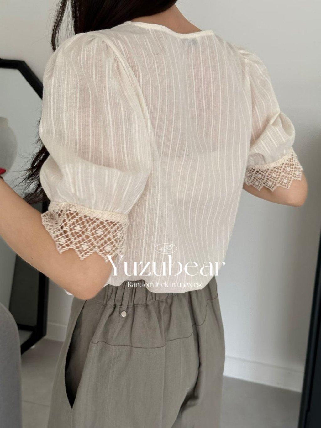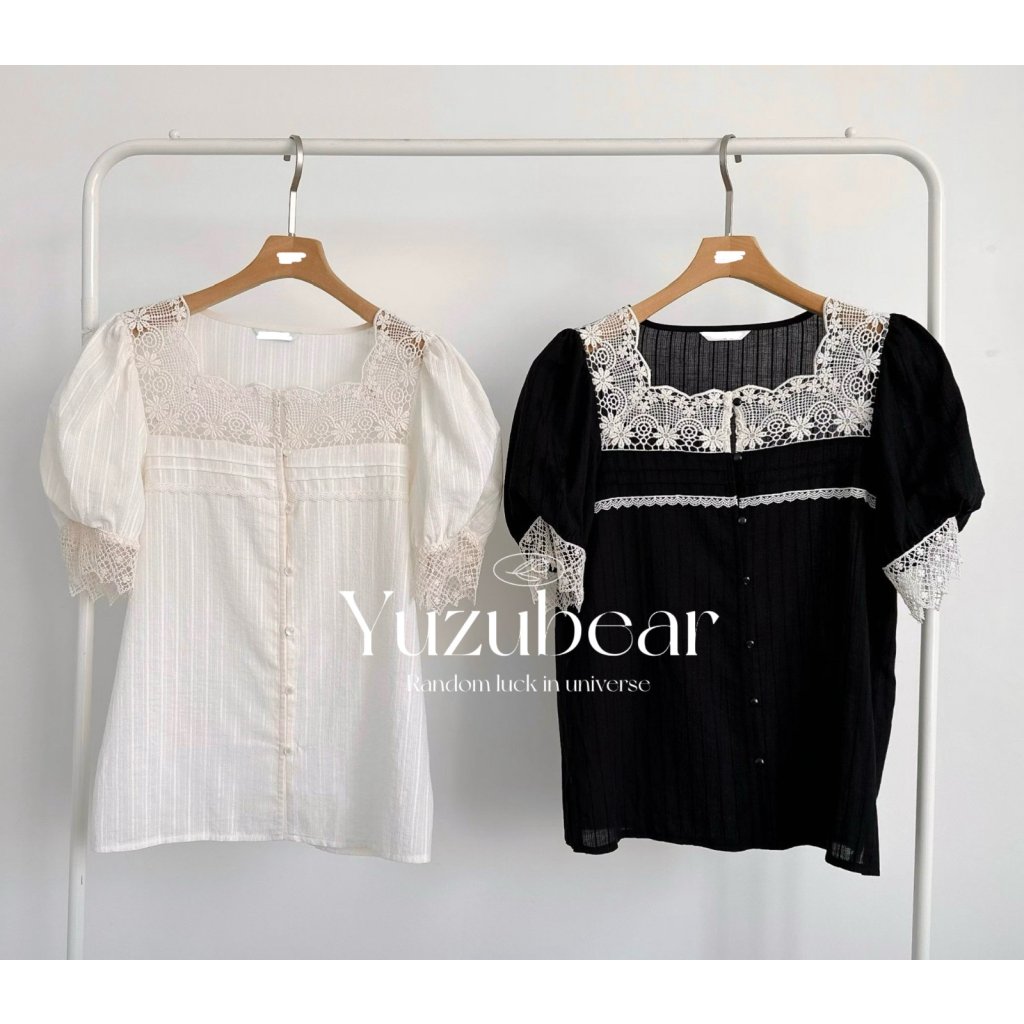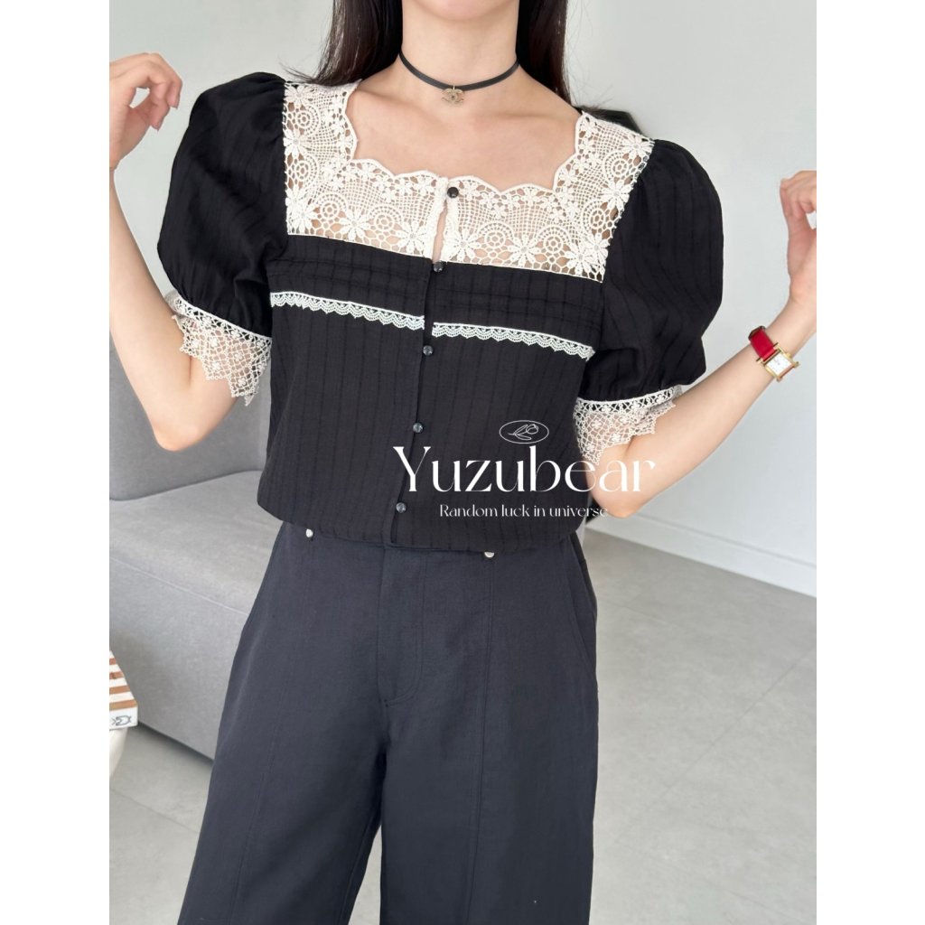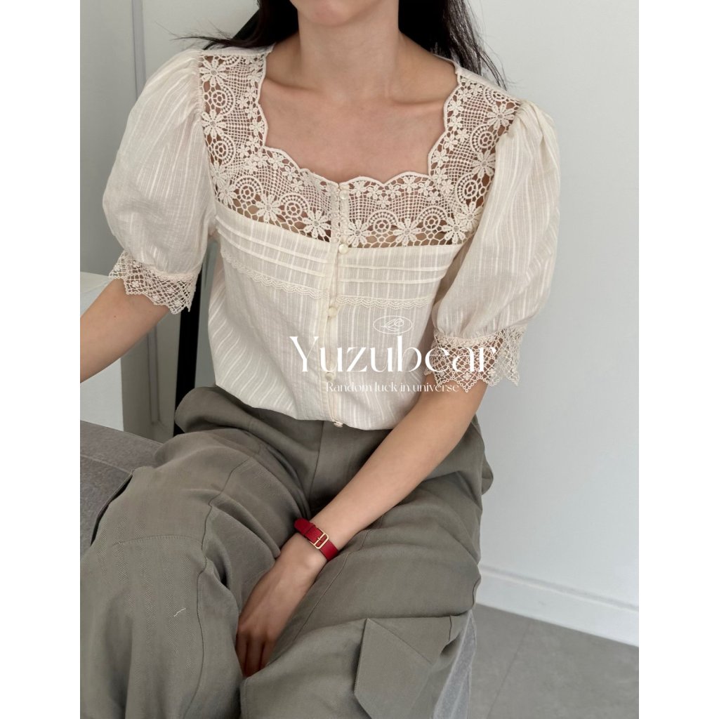 AG6 韓國高質通花拼布方領blouse