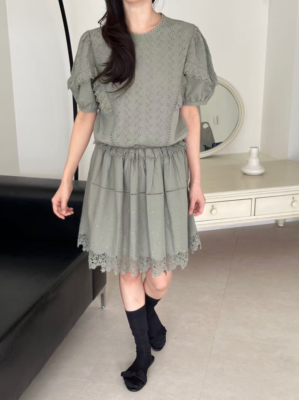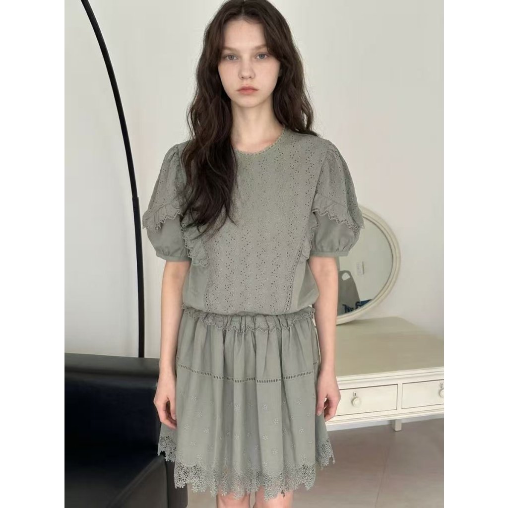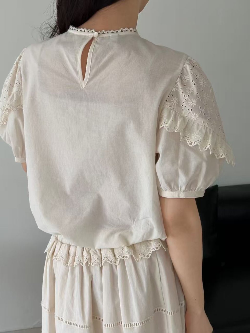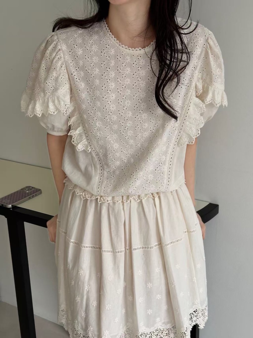 主頁 AG32 韓國高質雛菊刺綉通花公主袖blouse