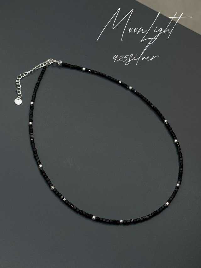 MS11 韓國925純銀拼黑水晶頸鏈